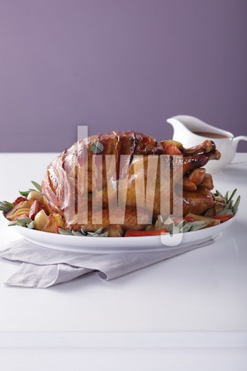 Bacon Topped Turkey with Maple Glaze