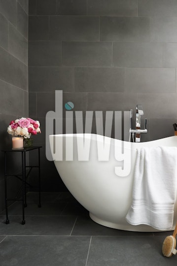 Bathtub in a Dark Tile Bathroom