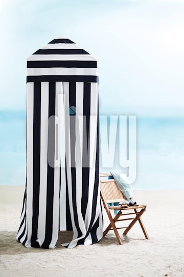 Black and White Striped Dressing Tent on a Beach