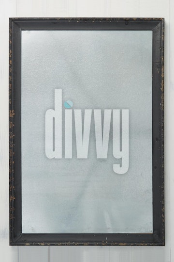 An antique mirror in a black frame hangs on a beadboard wall.