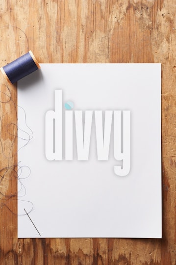 A sewing needle and spool of navy thread rest on one side of a blank sheet of paper.