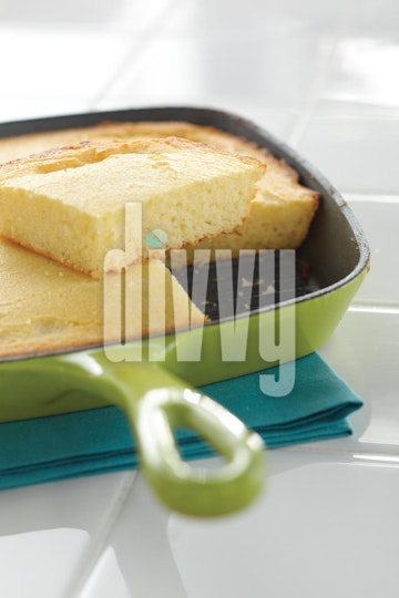 Cornbread in a Green Skillet