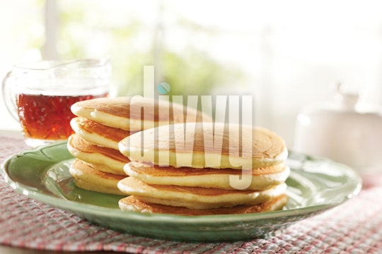 Stacks of Fluffy Pancakes on a Green Platter