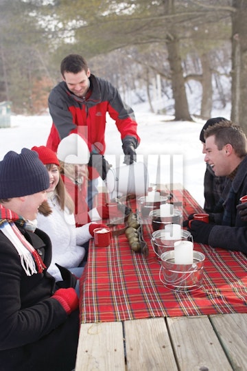 Group of People Having a Winter Picnic
