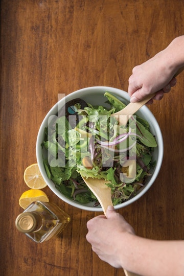 Hands Tossing a Salad