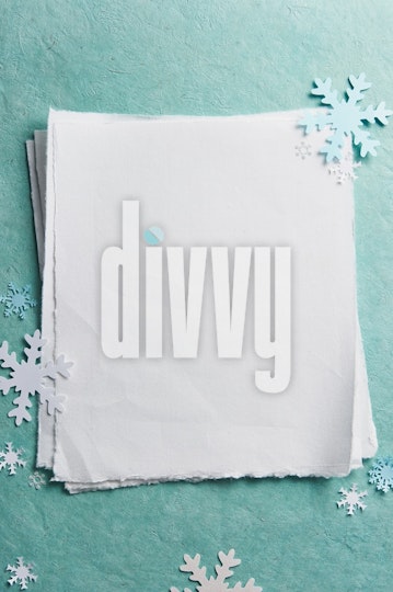 Multiple sheets of heavy paper sit with paper snowflakes on an aqua blue background.
