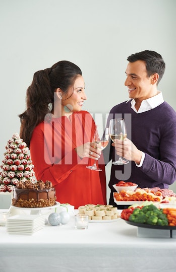 Man and Woman at a Holiday Party Buffet