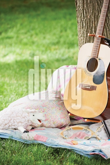 Musical Instruments on a Blanket in the Grass