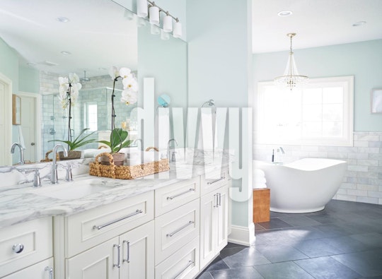 Airy Bathroom Counter and Pedestal Bathtub