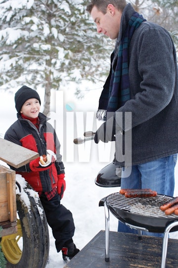 Grilling Hot Dogs in Snow