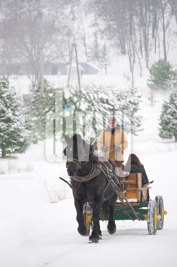Man Directing a Horse Drawn Carriage in the Snow