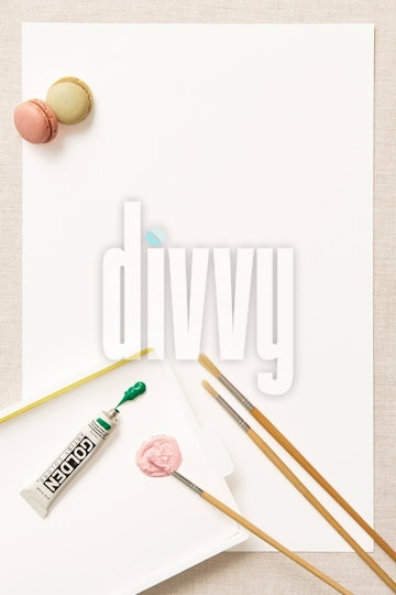 Paints on a Palette with Paint Brushes and Macaroons