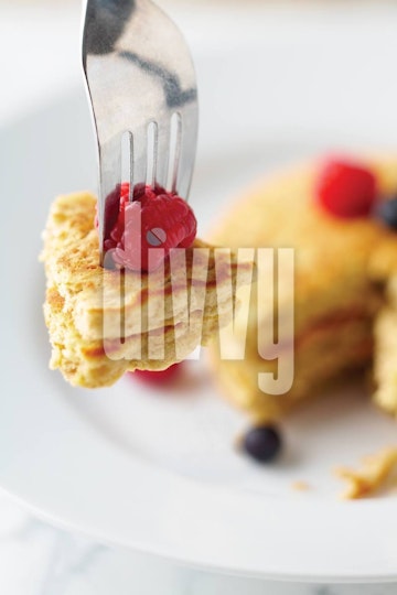 Pancake and Raspberry on a Fork