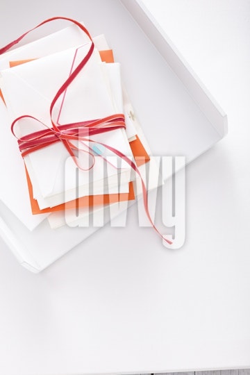Envelopes Tied with Red Ribbon
