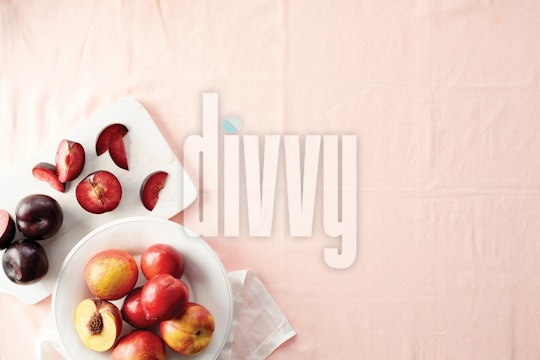 Plate of Nectarines and Plums on a Pink Tablecloth