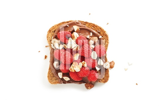 Toast Topped with Raspberries, Hazelnut and Chocolate Spread