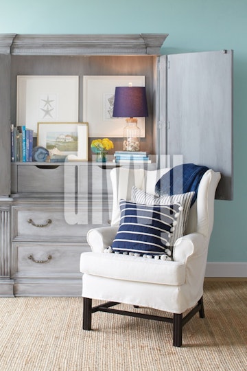 Repurposed Gray Wardrobe and White Chair