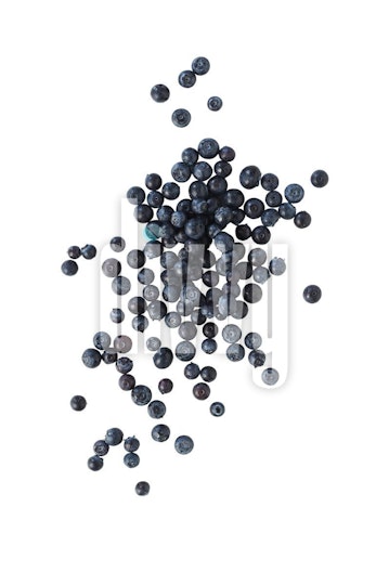 Blueberries Scattered on White