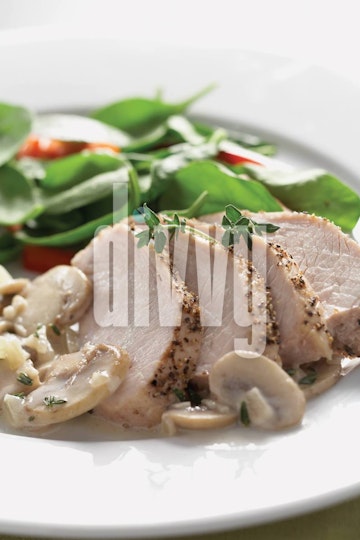 Turkey Tenderloin and Mushrooms with Spinach Salad
