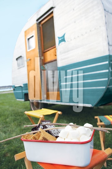 S'mores Ingredients by a Vintage RV