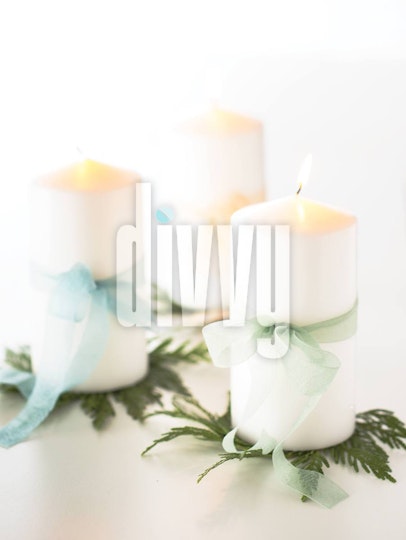 White Candles Tied with Ribbons