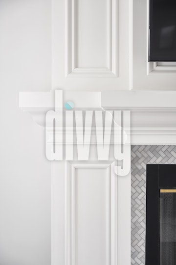 White Mantle and Molding Surround Herringbone Tile Fireplace