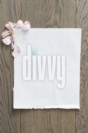 White textured paper paper with a pink flower on a wood background.