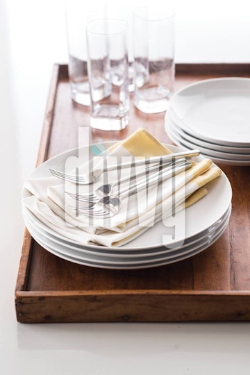 Wood Tray of Dinnerware