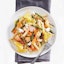 One piece is removed from a baking dish of garden vegetable lasagna rolls topped with mozzarella cheese and fresh basil leaves.