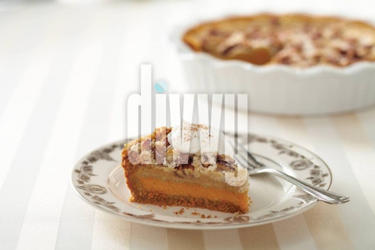 Slice of Pumpkin-Pecan Layer Pie