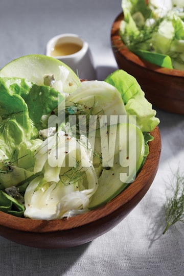 Apple-Fennel Salads in Wooden Bowls
