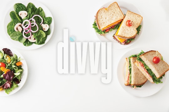A turkey sandwich and a ham sandwich are served with two types of salad on a white surface.